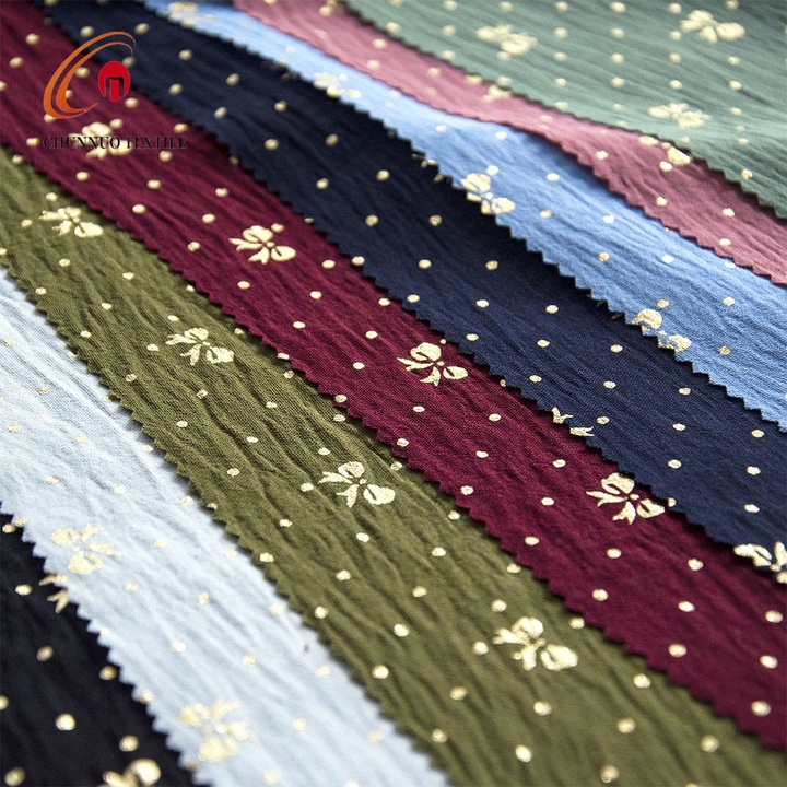 Tessuto lamina d'oro di mussola 100% tessuto in poliestere 180D * 160Gsm tessuto CEY Airflow tinta tinta per donna sciarpa